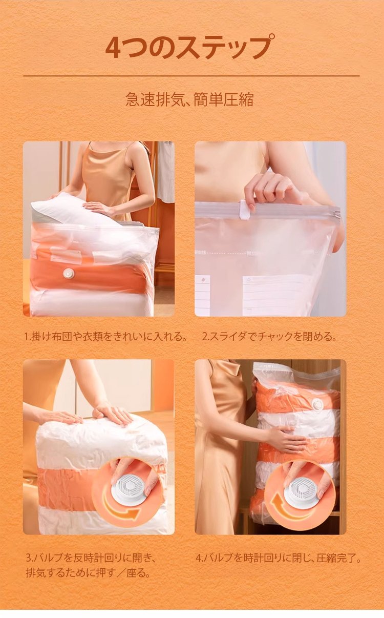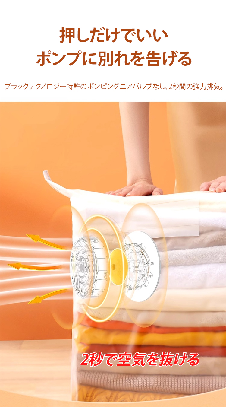 ポンプ不要圧縮袋